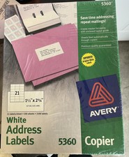 Avery® Address Labels for Copiers, 1-1/2" x 2-13/16", 2,100 White Labels (5360)