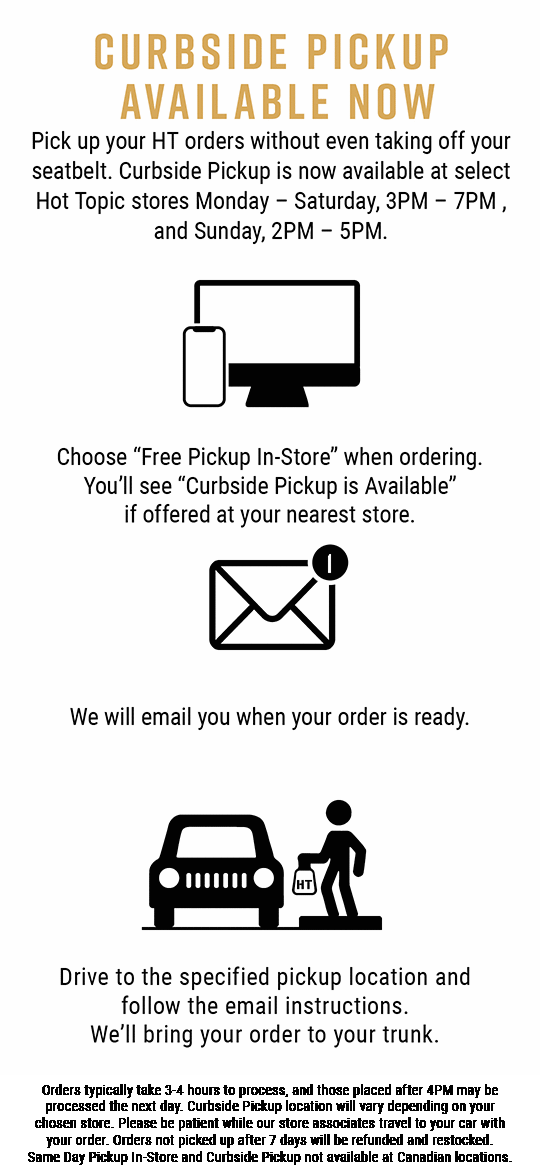 International | Hot Topic Hot Topic is not responsible for lost or damaged packages. If you have an order number, you can easily use our self-serve return form. Fill out the fields on the self-serve return form that was provided with your order. Pack your return securely, in the original package if possible, and include your completed return form. Recent Hot Topic Shipping : r/funkopop - reddit I noticed recently Hot Topic/Box Lunch will ship 1-3 small items in bags (even w/ their ship to store option). One of my items was damaged from HT when I picked it up (the bag could hold 2 pops - they were placed in a sorter box in the bag). When I asked for a replacement or refund - she told me the figure itself was fine, just the box was ... Returns | Salesforce Commerce Cloud | 5.1.0 | 20221103_1057_REV ... Hot Topic Returns - 6001 Reliance Dr. La Vergne, TN 37086 Returning to Hot Topic Stores All returns (refunds or exchanges) must be accompanied by the original receipt and may be returned to any Hot Topic location. All merchandise must be returned in its original packaged and ticketed, unused, and resalable condition. Hot Topic Jewelry Return Policy - howigotjob.com Fill out the hot topic self-serve return form from their website. Get your package ready with a shipping label. Take your parcel to any UPS store. Make sure you are returning the product in resalable condition or else they might refuse to refund. The processing of the credit begins once the parcel reaches the Hot Topic personnel.